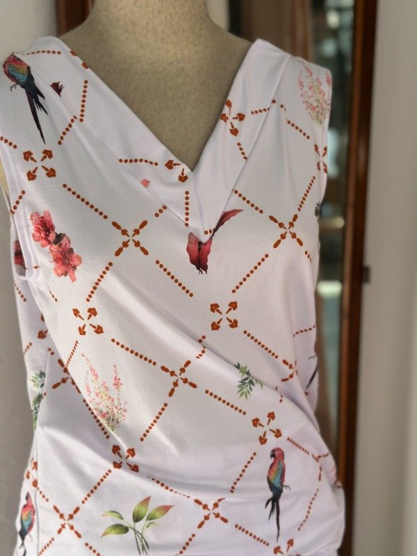 “Loros, hojas y flores tropicales que llenan tus sueños de color y frescura. Una estampa alegre y natural para descansar con espíritu libre.”